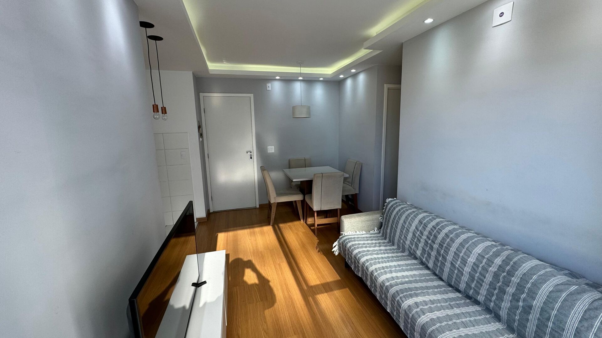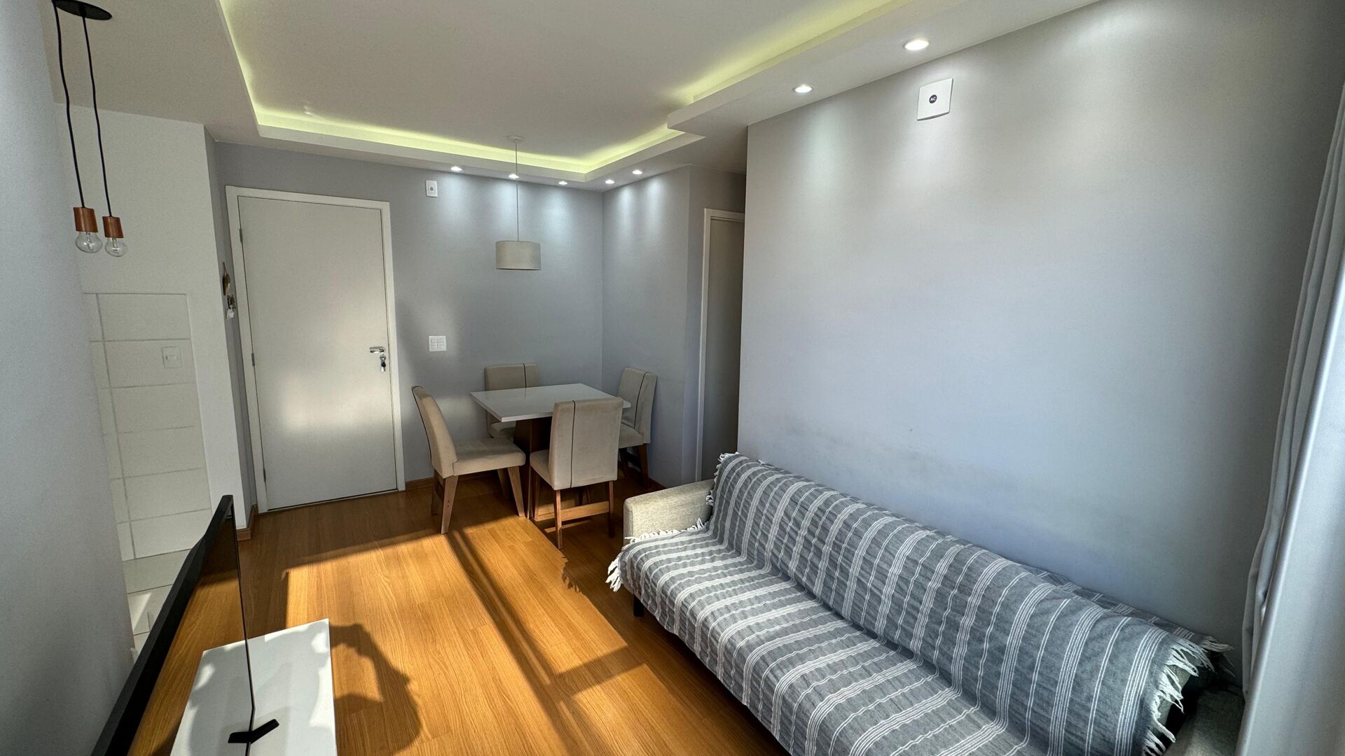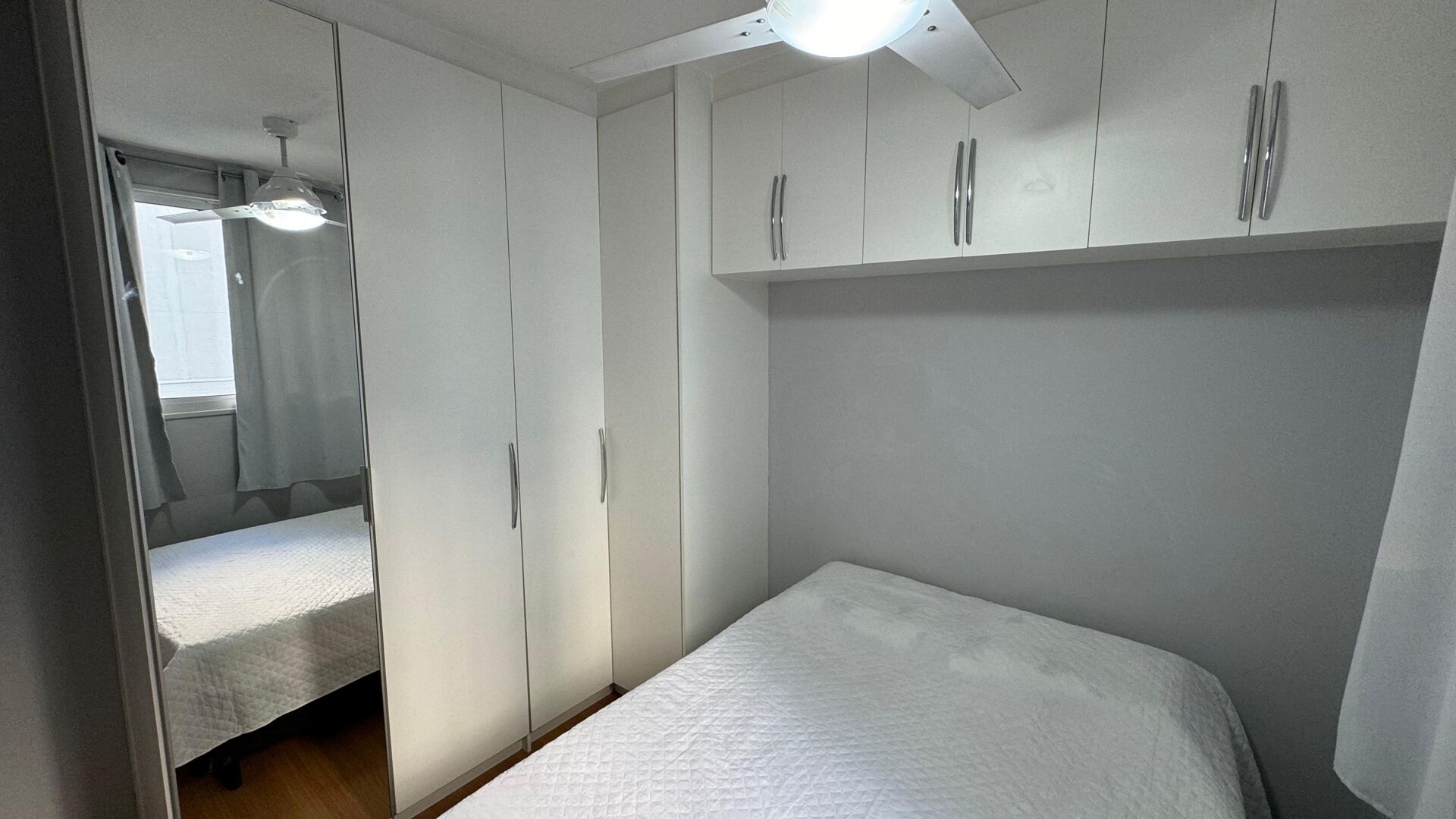 Apartamento com 45m² muito bem distribuídos, claro, arejado e com excelente aproveitamento dos espaços. Composto por 2 quartos, sendo um deles com armários planejados, o imóvel possui piso paviflex em quase toda a extensão, proporcionando praticidade e fácil manutenção. A sala é dividida em dois ambientes, ideal para criar um espaço aconchegante de estar e jantar, além de contar com varanda com fechamento em blindex, que garante mais conforto e luminosidade natural.