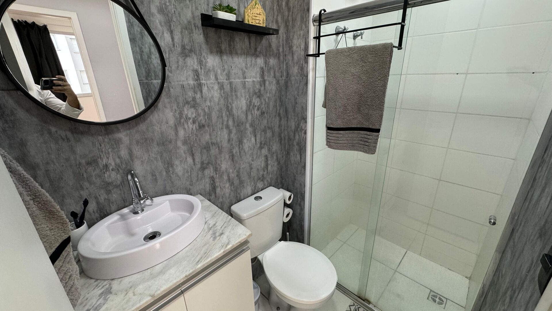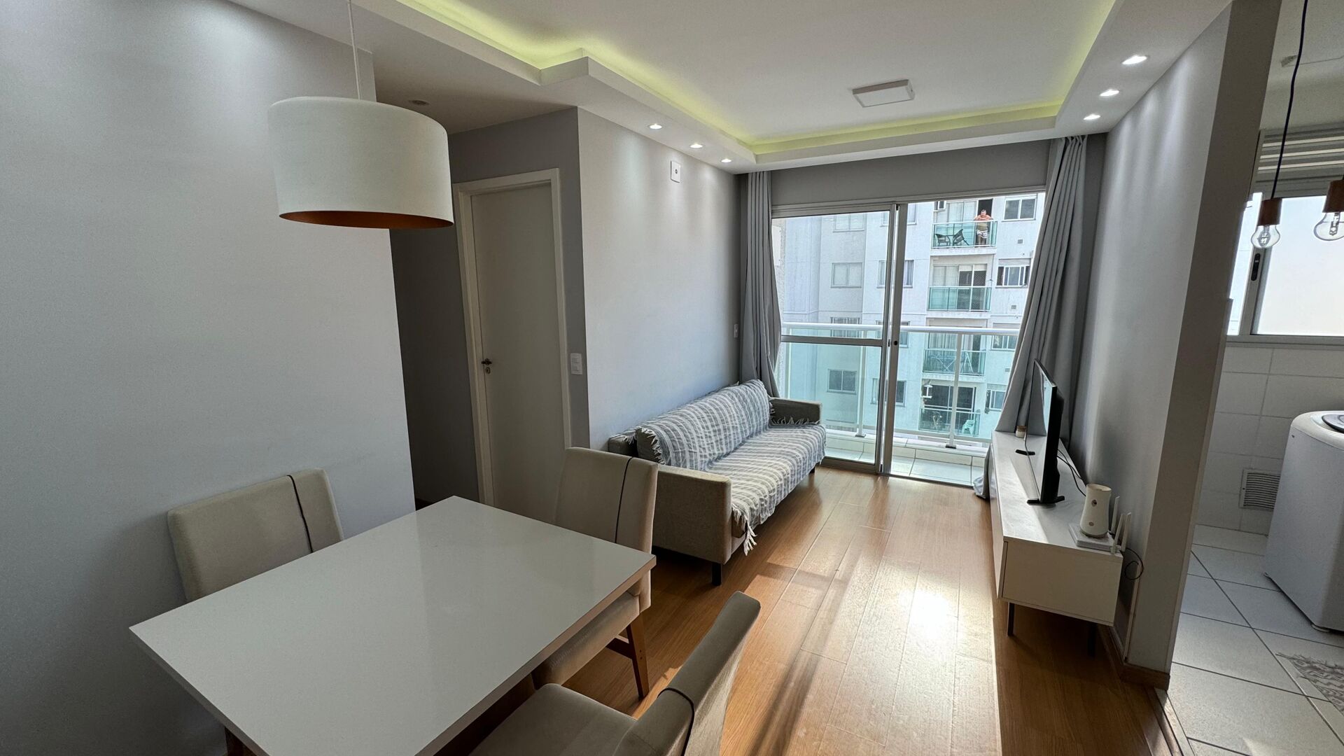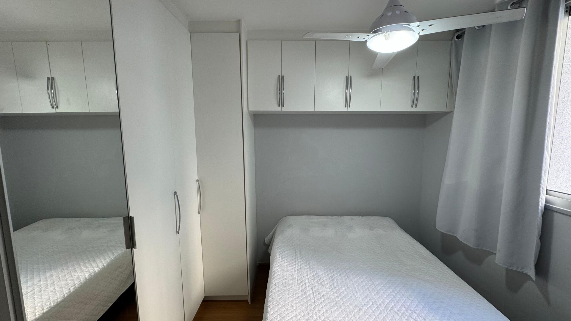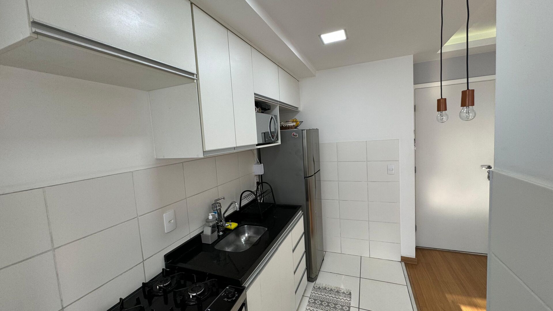 Apartamento com 45m² muito bem distribuídos, claro, arejado e com excelente aproveitamento dos espaços. Composto por 2 quartos, sendo um deles com armários planejados, o imóvel possui piso paviflex em quase toda a extensão, proporcionando praticidade e fácil manutenção. A sala é dividida em dois ambientes, ideal para criar um espaço aconchegante de estar e jantar, além de contar com varanda com fechamento em blindex, que garante mais conforto e luminosidade natural.